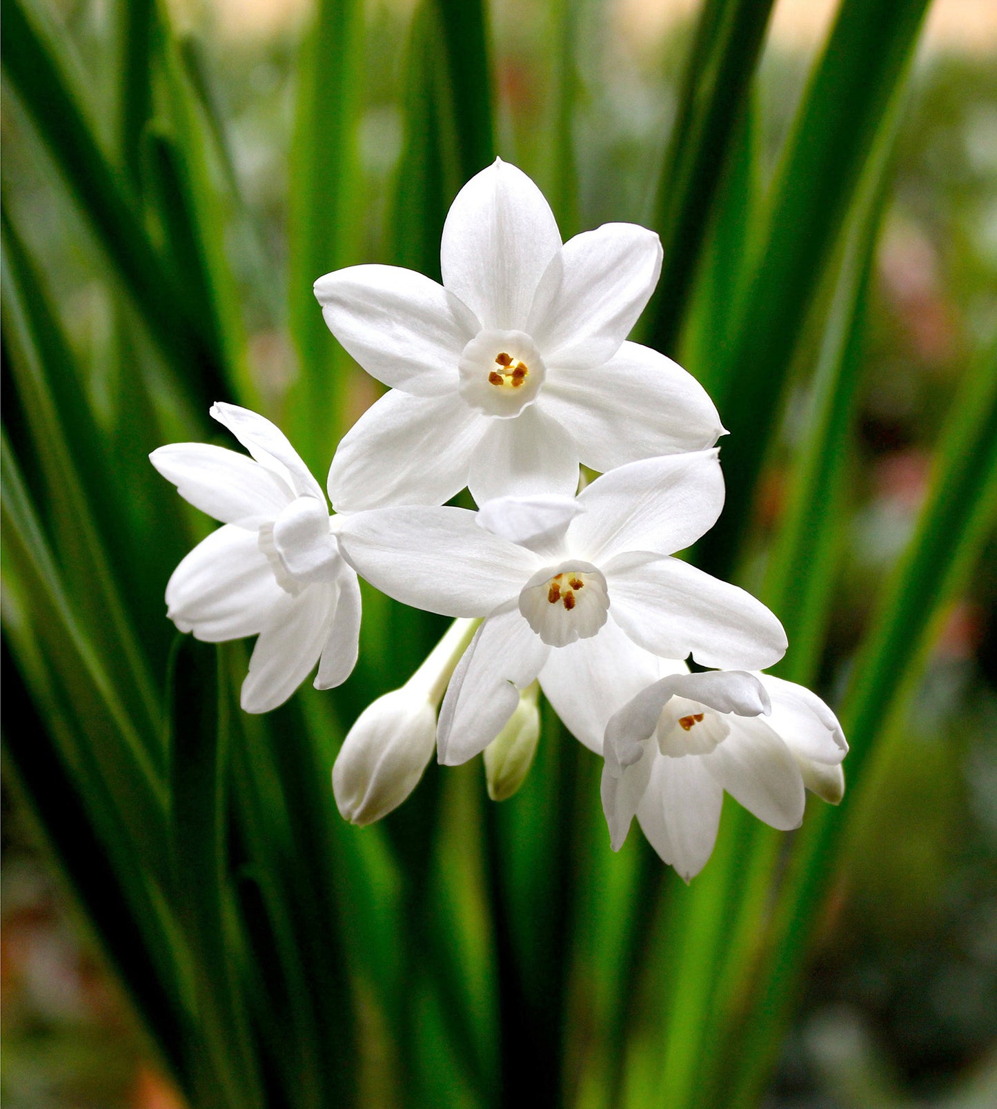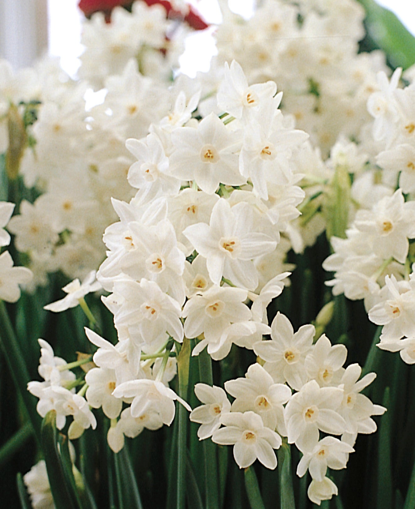 نرجس البابيراسيوس نباتٌ معمرٌ بصلي الشكل، يحمل عدة أزهار في عناقيد، وله رائحة عطرية نفاذة. يزدهر نبات البابيراسيوس في البيئات الرطبة. يمكنك زراعته في الماء داخل المنزل، ولكن زراعته في التربة تسمح للجذور بامتصاص العناصر الغذائية الأساسية اللازمة لتزدهر من جديد. لا يتحمل نبات البابيراسيوس درجات حرارة منخفضة كغيره من أنواع جنس النرجس. مقاومٌ للغزلان. خيارٌ جيدٌ لزراعته كأزهارٍ مقطوعة. يُزرع في الشمس المباشرة أو في الظل الجزئي. المنطقة الزراعية من 8 إلى 11 وفقًا لوزارة الزراعة الأمريكية. الارتفاع: 40 سم / 16 بوصة. من أشهر أصناف البابيراسيوس. رائحةٌ زكية.