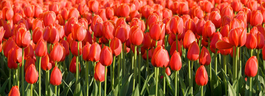 Tulips are perennial herbaceous bulbiferous geophytes with showy flowers in various shades and tints of attractive hues. One of the first flowers to bloom in the spring, plant tulips in mass to create a striking visual effect. Add interest to your lawn by planting tulip bulbs in the turf; once the flowers and leaves die back tulips become dormant in the summer to emerge from their bulb again the next year. In their natural growing environment tulips grow wild in steppes and mountainous areas with temperate climates. Endemic to the Near East and Central Asia, tulips may have been in cultivation as early as the 10th century in Persia. With the long history of cultivation and naturalization of tulips in different parts of the world classification of hybrids and cultivars is complex. Tulip plants require very low maintenance. Plant early, mid and late flowering varieties for a continuous spring display in a wide spectrum of colours. Tulips continue to grow after being cut, making these flowers a favourite for florists and last long in a vase as cut flowers.