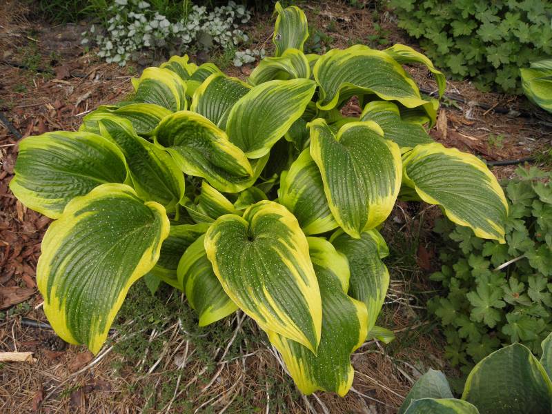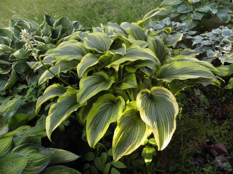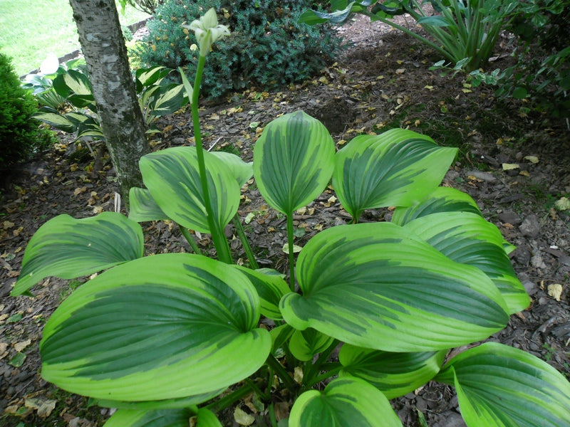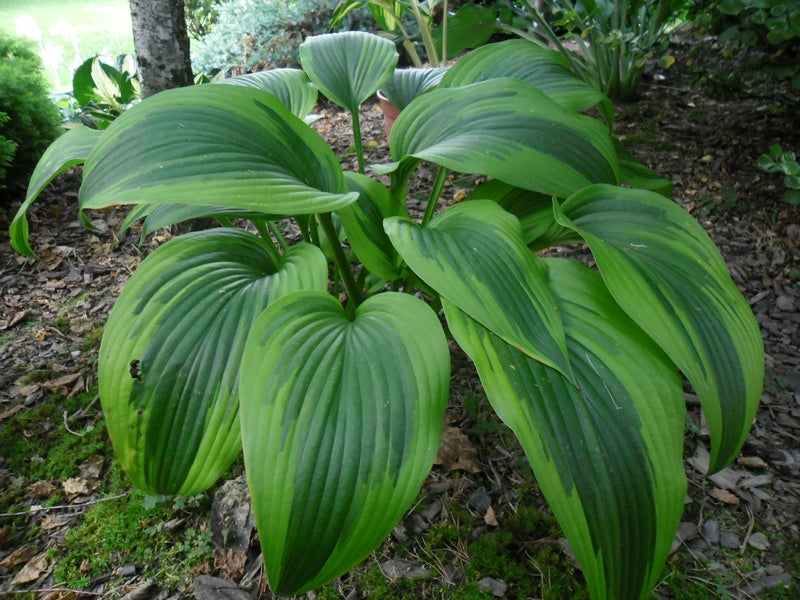 Hostas are long lived perennials that are winter hardy, visually striking shade tolerant plants. The reliable foliage comes out in abundance every spring for an elaborate green display all summer long. The flowers are held on woody upright scapes taller than the leaf mound that remain on the plant throughout winter. Grow in rich soil with constant moisture. Plant in moderate to full shade areas. USDA zones 8 to 2. Height x Spread: 70cm x 175cm/ 28’’ x 70’’ Slug resistant. Garden giant.