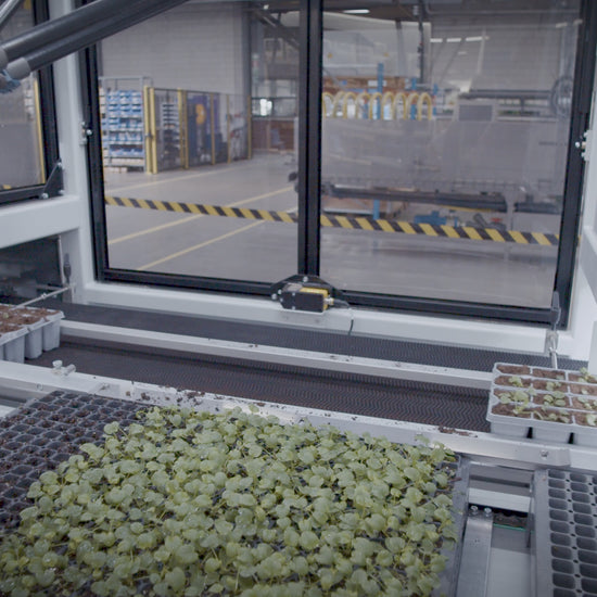A standout feature is the conveyor tracking functionality. This technology allows trays to move continuously on the conveyor belt while the robot filler adds plants. As a result, the production line remains in motion, ensuring maximum output. The robot filler can be easily added to any existing line in a nursery, making it a valuable addition to existing setups. Thanks to its modular design, the machine can be quickly installed and integrated without requiring major adjustments to the current production line.