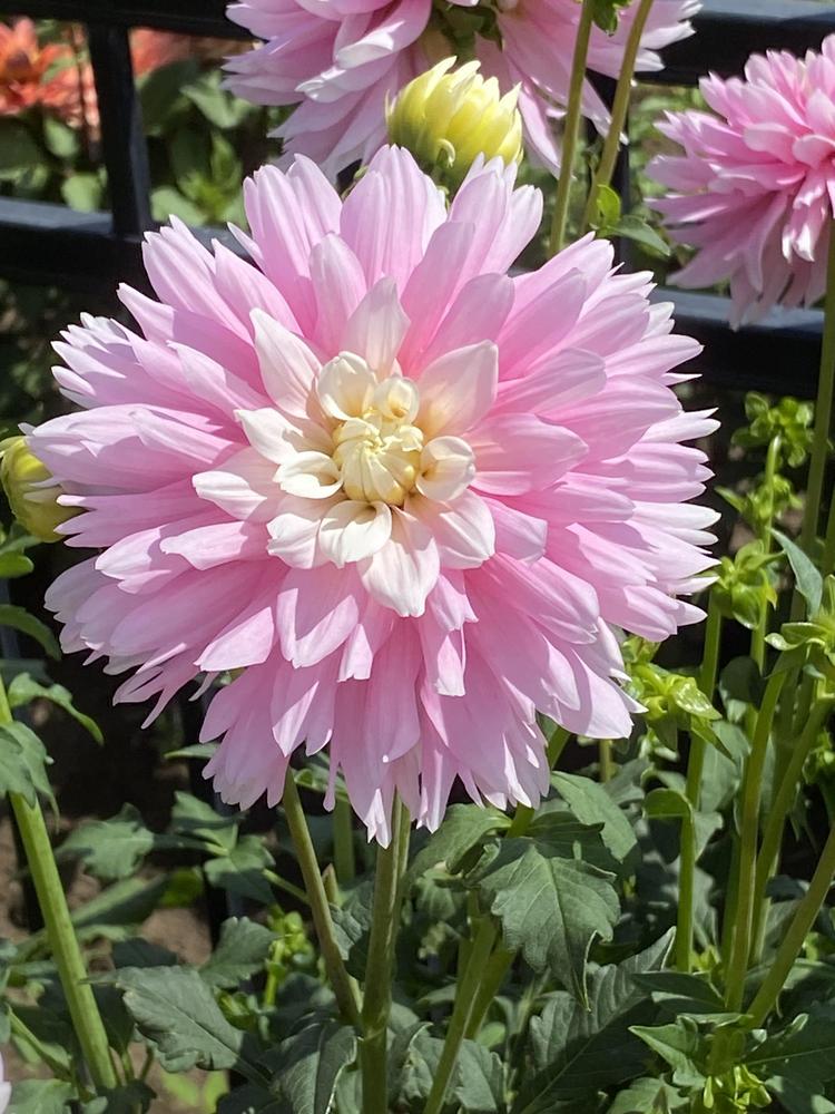 4" blooms of pure pink with white center. Blooms are slightly fimbriated. A great cut flower that produces nice stems. Plant height is 5’. Informal Decorative Dahlia. Flowers in 90 days.