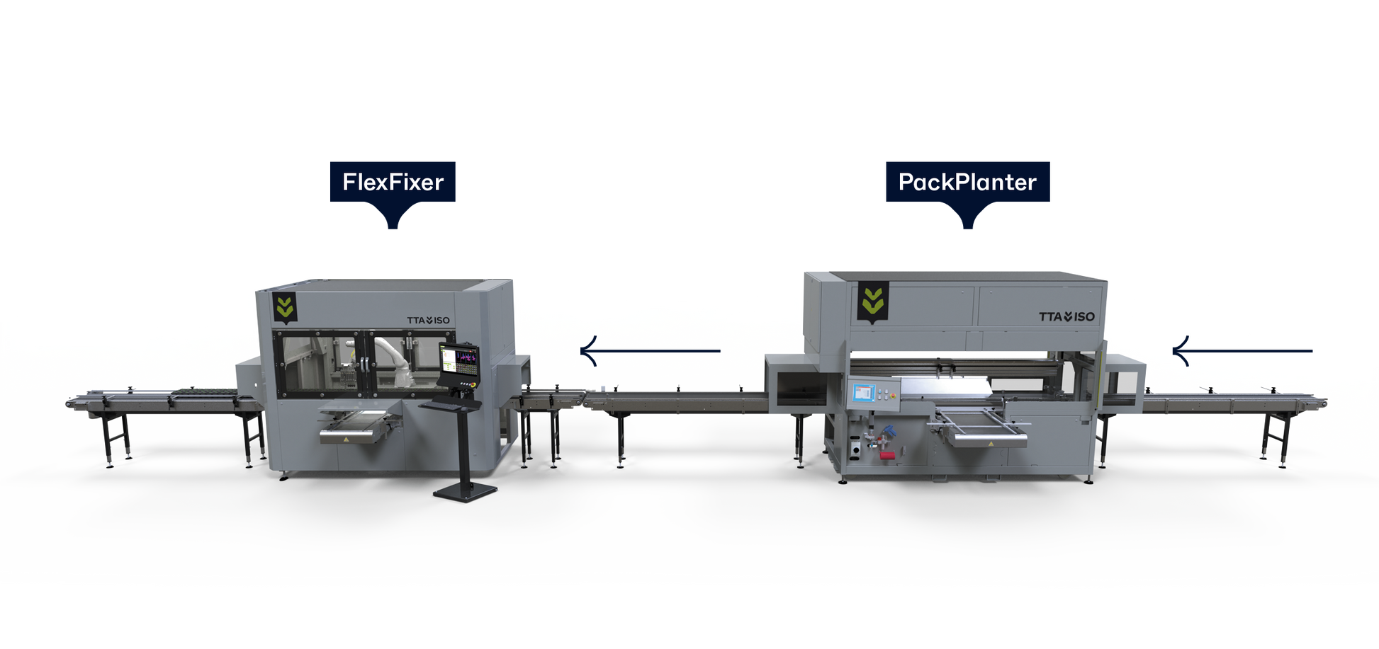 Easy to integrate behind a PackPlanter or PackPlanter S or even another brand transplanter, the FlexFixer helps you reduce labor dependency, improve transplanting quality, and maximize efficiency in your nursery operations. The FlexFixer can also be used as high quality transplanting machine, delivering an almost 100% transplanting success rate.