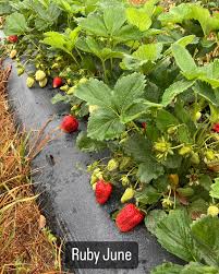 Ruby June produces consistent sweet and tasty strawberries throughout the harvest season. The disease resistant short day strawberry variety is perfect for the southeast United States, featuring a compact, tight plant architecture and leaf structure. The large, medium firm Ruby June strawberries have a very dark exterior and interior colour with excellent flavour. The fruit is great for all recipes calling for strawberries and adaptive to commercial planting, fresh markets and u pick farms.