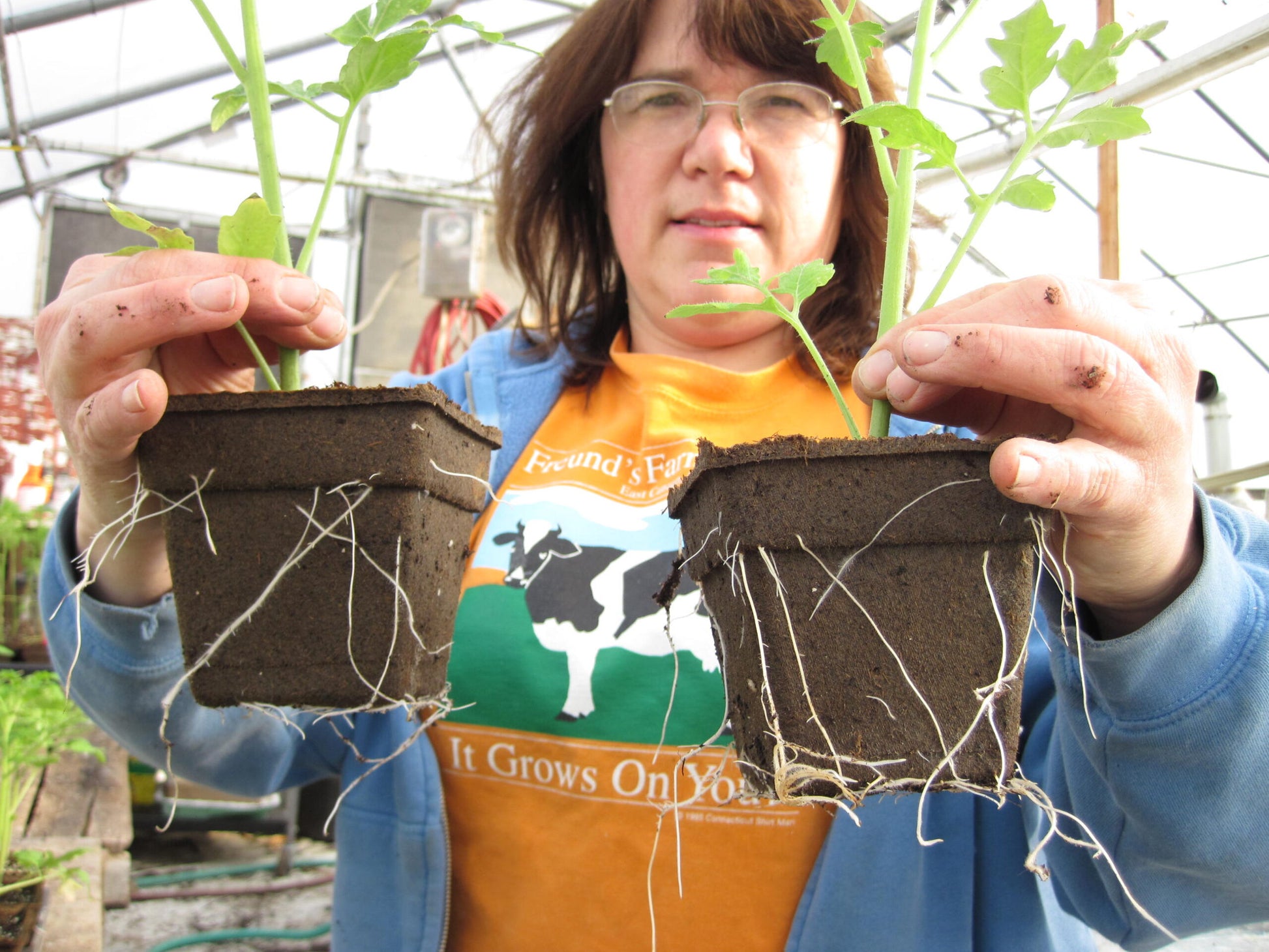 - Planting and potting up young seedlings and rooted cuttings with their pot provides essential root protection from transplant shock.