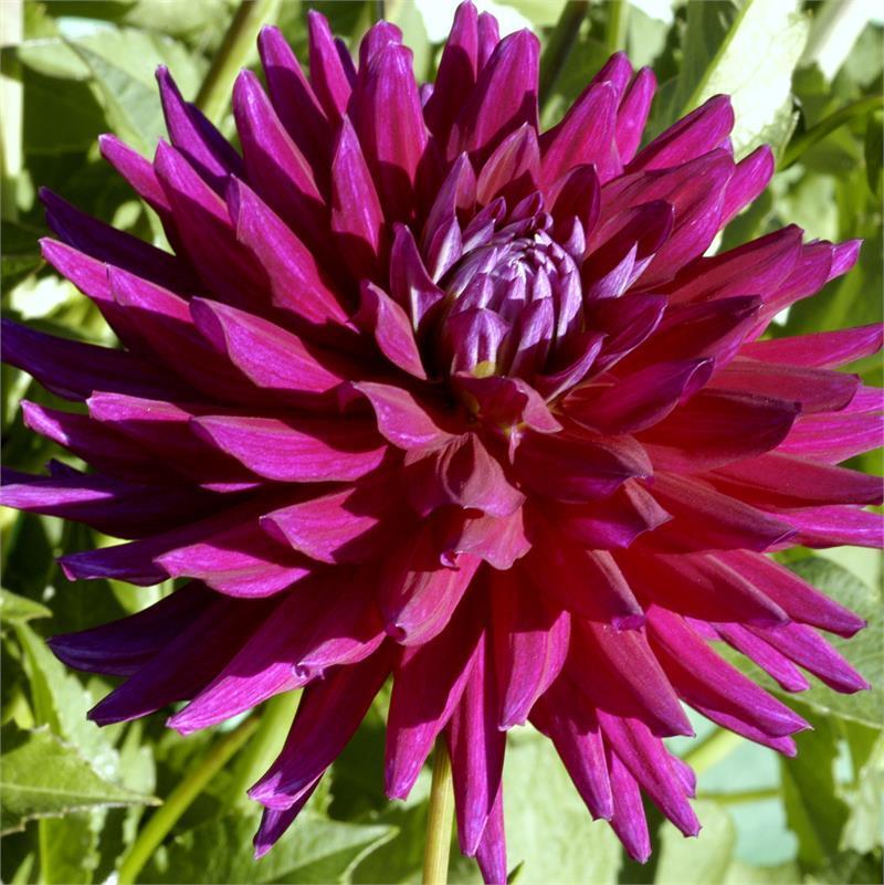 Beautiful, rich purple blooms with silver highlights are very striking. The 5" flowers have great exhibition qualities and should show well. The plant grows to 4' and has great stems, so if you like cut flowers, you will love this one. Semi Cactus Dahlia. Flowers in an average of 90 days. In cultivation since 2003.