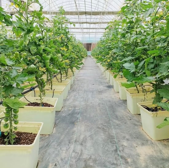 Bato Dutch bucket hydroponic cultivation systems are used to grow large, long term plants with respect to growth to fruiting maturity. The top fed culture Bato buckets can be linked to be a recirculating system that conserves nutrients or drain to waste hydroponics set up that hinders nutrient attenuation. Dutch buckets hydroponics allow for larger spacing between plants from the get go or as they grow, making the method suitable for dense fruiting plants, vegetative vines and bushes. In case of a pest or disease the individual Bato bucket containing the affected plant can be removed from the configuration and more Dutch buckets can be added to the hydroponic growing arrangement when scaling up. Bato buckets are ideal for aquaponics where aquatic organisms like fish and crustaceans are bred in aquaculture dedicated farming spaces and the water used to contribute to plant growth in a relayed hydroponics structure.