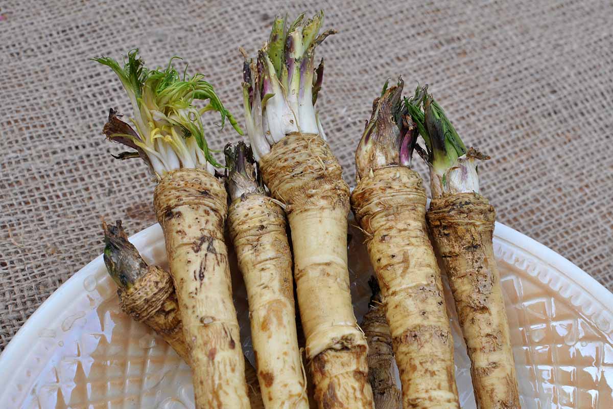 This is the standard variety for gourmet horseradish sauce. Vigorous plants produce large white roots for use in late fall or winter-just chop and add vinegar. Plant as soon as the soil can be worked with the thick end up, about 18" apart. Harvest after 1 year in the garden. Best for zones 3-9.