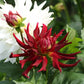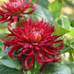 Dahlias are lush flowering plants. Perennials in hot and moderate countries, dahlias need to be grown as annuals in cold winter regions. Being frost sensitive, dahlia tubers need to be planted outside in late spring after all danger of frost has gone by to reward you with an enormous number of large flowers late summer until first frost in autumn and lifted in the fall before temperates dip below zero, leaves and soil cleaned off and stored inside in a cool, dry place. Prune new growth to obtain more bushy dahlia plants and deadhead often once flowering starts to obtain an increased number of blooms. Dahlia can be grown and propagated from seeds, tuberous roots and rooted cuttings. Dahlias are fast growers and one plant produces numerous flowers making them ideal to grow for cut flowers. Substantial composite flower heads are produced on leafy stems. The florets come in a vast array of colours encouraged by the ease of creating dahlia hybrids. Plant in full sun with afternoon shade and water often. 8’’ wide flowers. Height: 90cm/ 36’’