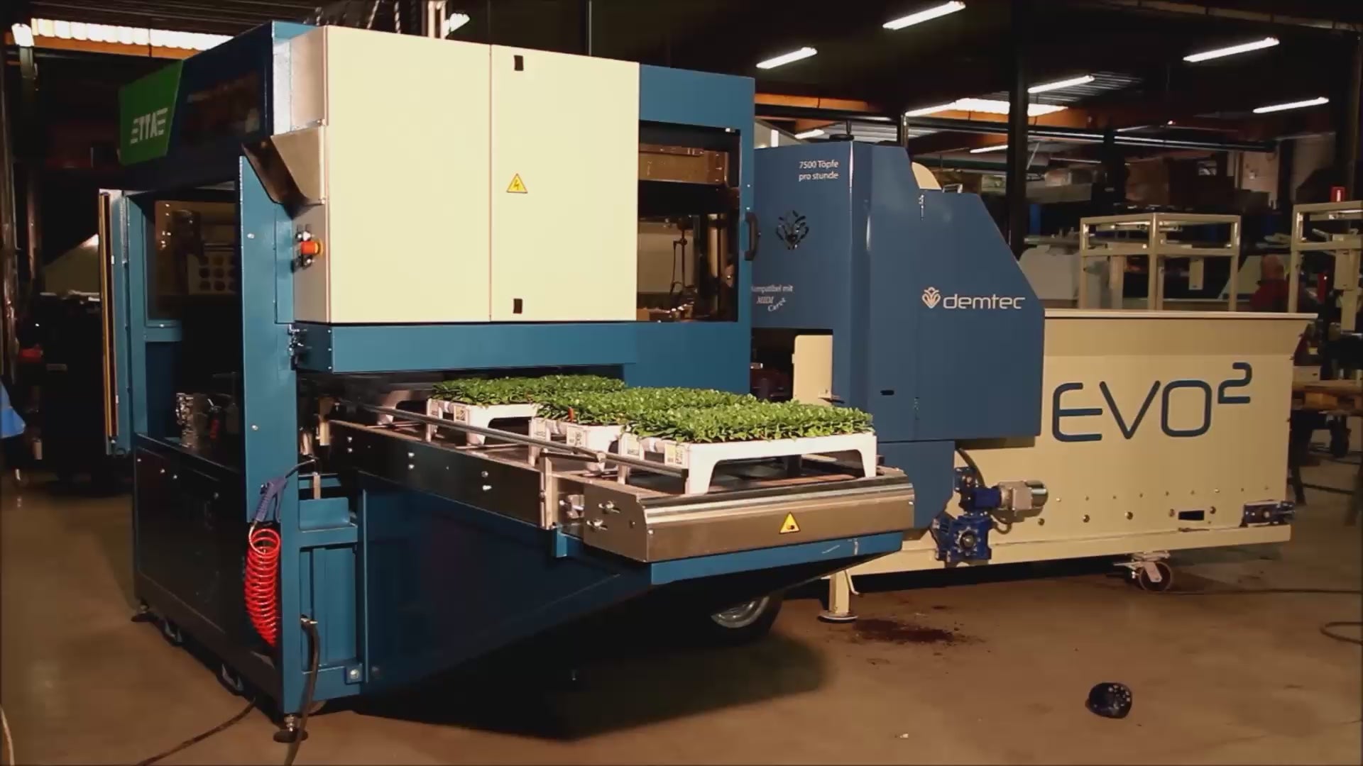 The MidiCurve is available in capacities ranging from 3000 up to 8000 plants per hour, depending on the pot filler and the number of plants per pot. The curve functionality can be disabled, so the MidiCurve can also be utilized for transplanting into trays, packs and shuttle trays. The MidiCurve offers an easy to use user interface with built in self diagnosis.