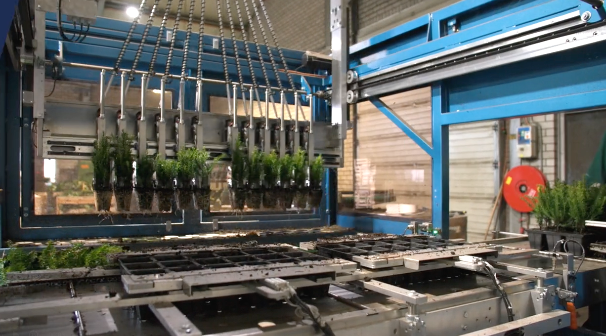 Automated plant transplantation, potting up and more, designed for trays, packs, shuttle trays and pots.