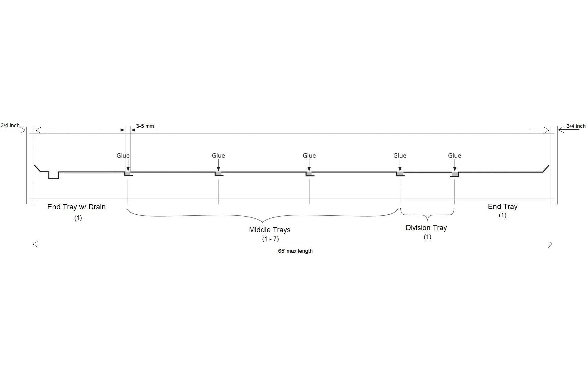 Each Infinity Tray setup MUST include the following, in consecutive order: (1) End Tray with Drain, (up to 7) Middle Trays, (1) Division Tray and (1) End Tray.