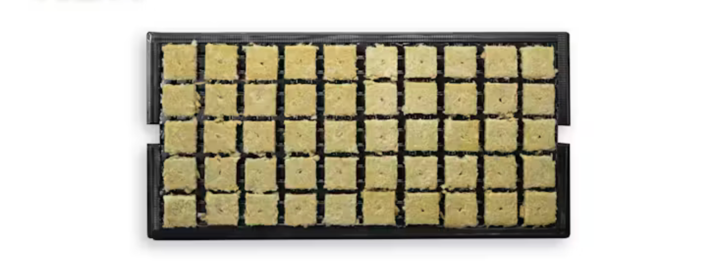1.5'' pre cut A OK plugs pre filled in a 10'' x 20'' insert of 50 1.4''x1.4''x1.6'' 50 plugs per tray