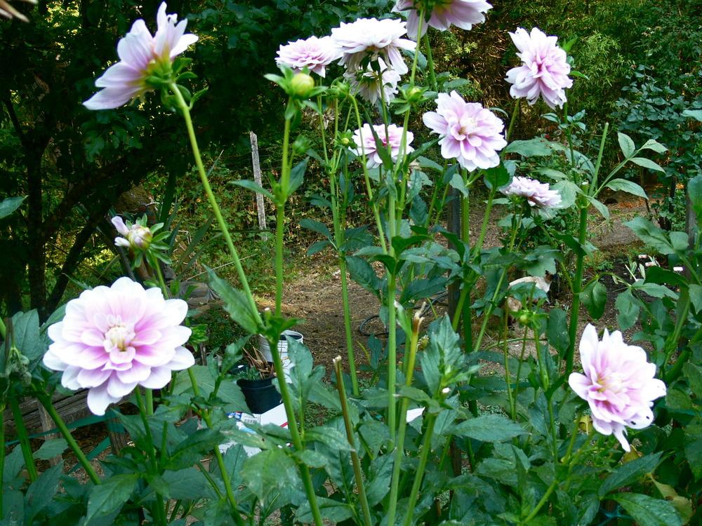 One of the largest waterlily dahlias. The 8" blooms are of soft lavender pink with a white frosting on the petal edges. The 5' plants are strong and vigorous. Waterlily Dahlia. Flowers in an average of 120 days. In cultivation since 1985.