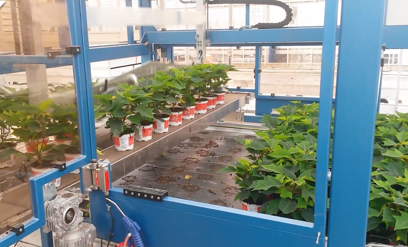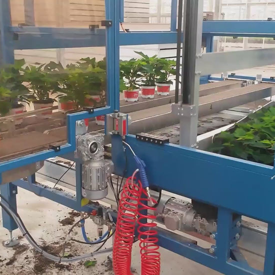 Individual driven moving pot forks for full flexibility in picking and placing.